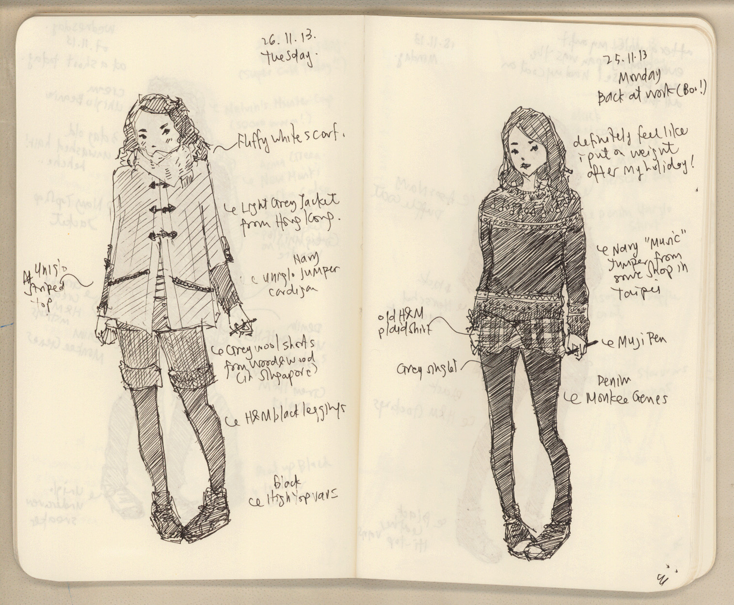 Towards the end of 2013, I decided to keep a diary of "What I Wore To Work Today", but I would illustrate everything I wore, and only in black pen.
